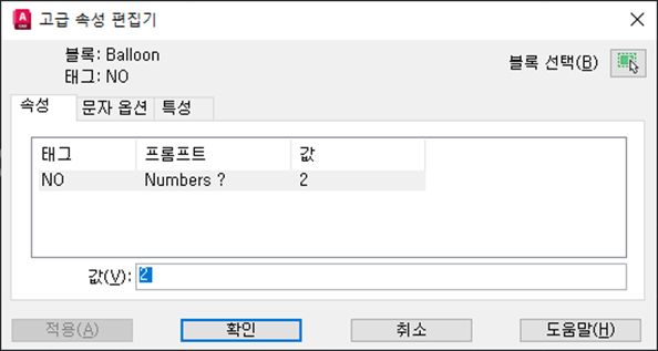 5. 품번기호를 편집하고자 할때는 속성블럭을 더블클릭하여, 번호를 변경할 수 있습니다.