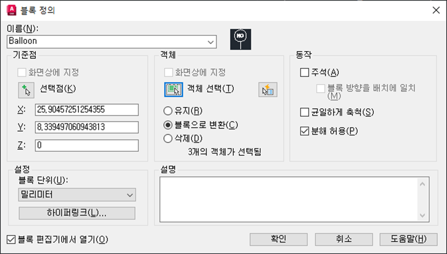 1. Block 만들기 – 품번기호를 블록으로 만듭니다.