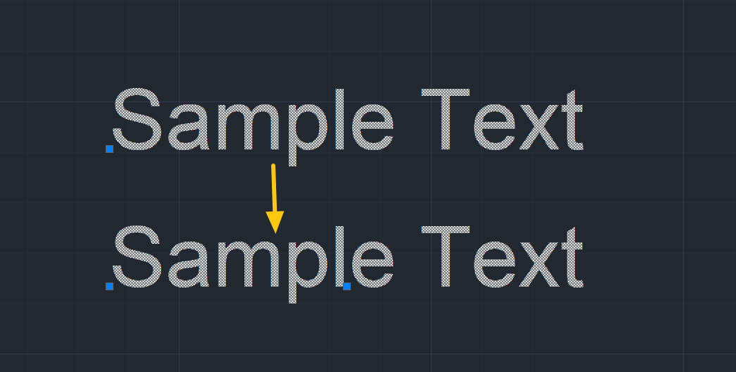 단일 행 문자에 대한 자리맞추기 점 옵션은 정렬, 맞춤 및 왼쪽 문자 옵션이 맨 아래 왼쪽(BL) 여러 줄 문자 부착점에 해당한다는 점을 제외하고는 여러 줄 문자에 대한 옵션과 유사합니다.