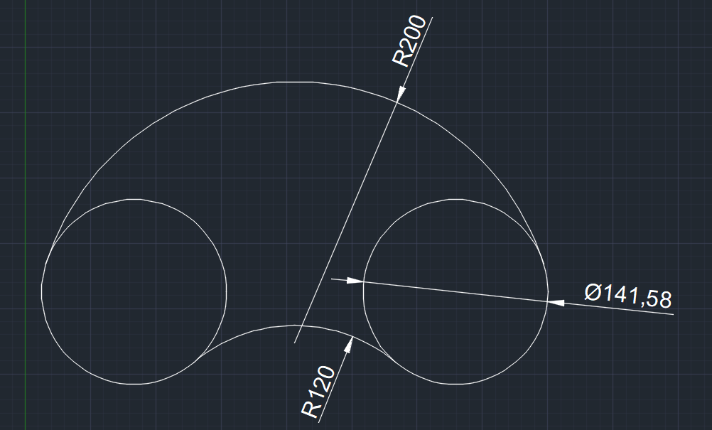 2개의 원을 기준으로 최외곽 (반지름: R200, 내부 원(반지름: R200) 의 도면 예제를 작성해 보도록 하겠습니다.