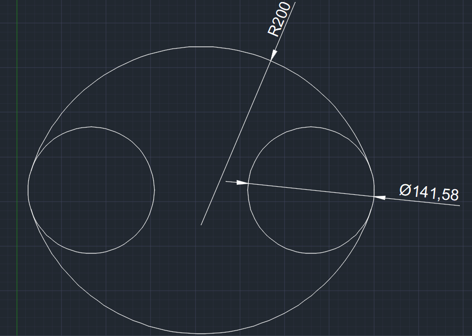 2개의 원을 기준으로 최외곽 (반지름: R200, 내부 원(반지름: R200) 의 도면 예제를 작성해 보도록 하겠습니다.