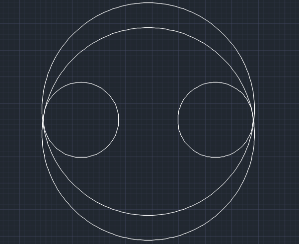 위와 같은 도면을 작성할 때는 2개의 원과 아웃 접점과 아래의 아 접점으로 원을 그린 후 Trim (자르기)를 이용하여 위의 도면을 작성합니다.