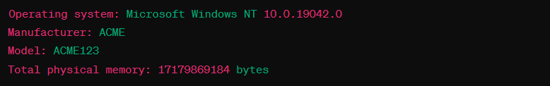 Console.WriteLine("Total physical memory: {0} bytes", managementObject["TotalPhysicalMemory"]);