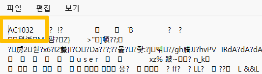 Sample.dwg파일을 메모장 또는 Text Editor 등을 이용하여 읽기를 실행합니다.