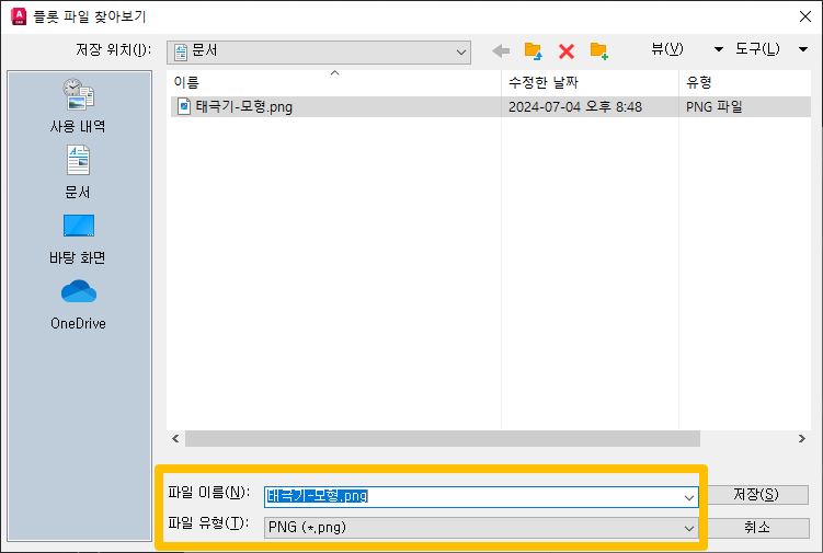 AutoCAD파일 문서를 공유하기 위한 방법 들 중, PDF 처럼 이미지 형식으로 파일을 저장하여 공유하는 방식중에 하나인 PNG 이미지 저장하기가 있습니다.