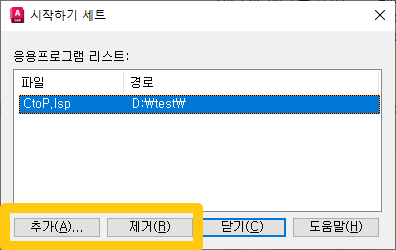 명령실행 5: 응용프로그램 자동 로드하기 (AutoCAD 재시작시 계속 사용가능)