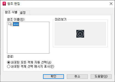 선택된 외부 참조 또는 블록에서 블록내의 객체를 편집할 수 있도록 합니다.