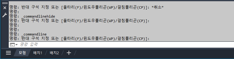 오토캐드는 기본 Command 방식이므로, 명령창이 안보이더라도, 입력하면 명령이 실행이 됩니다.