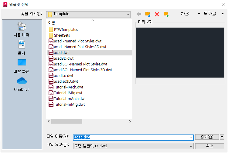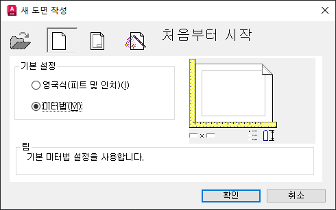0 : 정의된 설정 없이 도면을 시작합니다.