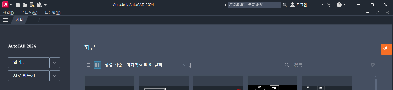 (오토캐드를 다시 시작해야 만 시작탭이 다시 나타납니다.)