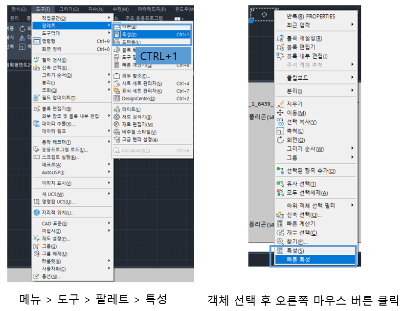 오늘은 도면의 특성, 속성을 편집할 수 있는 빠른 특성과 특성에 대해 알아보도록 하겠습니다.