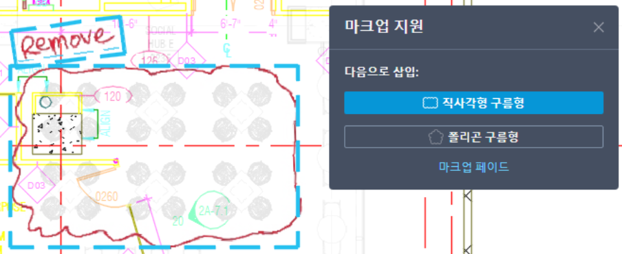 외부 참조에 마크업 지원을 적용할 수 있으며, 마크업 지원을 사용하여 구름형 리비전을 삽입, 직사각형, 폴리곤으로 삽입하도록 선택할 수 있습니다.